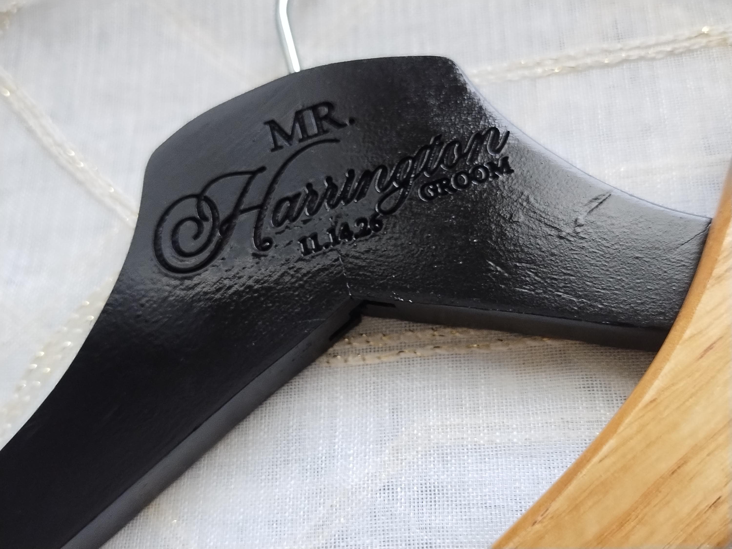 These hangers can be for you, the groom, mother of the bride, mother of the groom, bridesmaid, and etc.